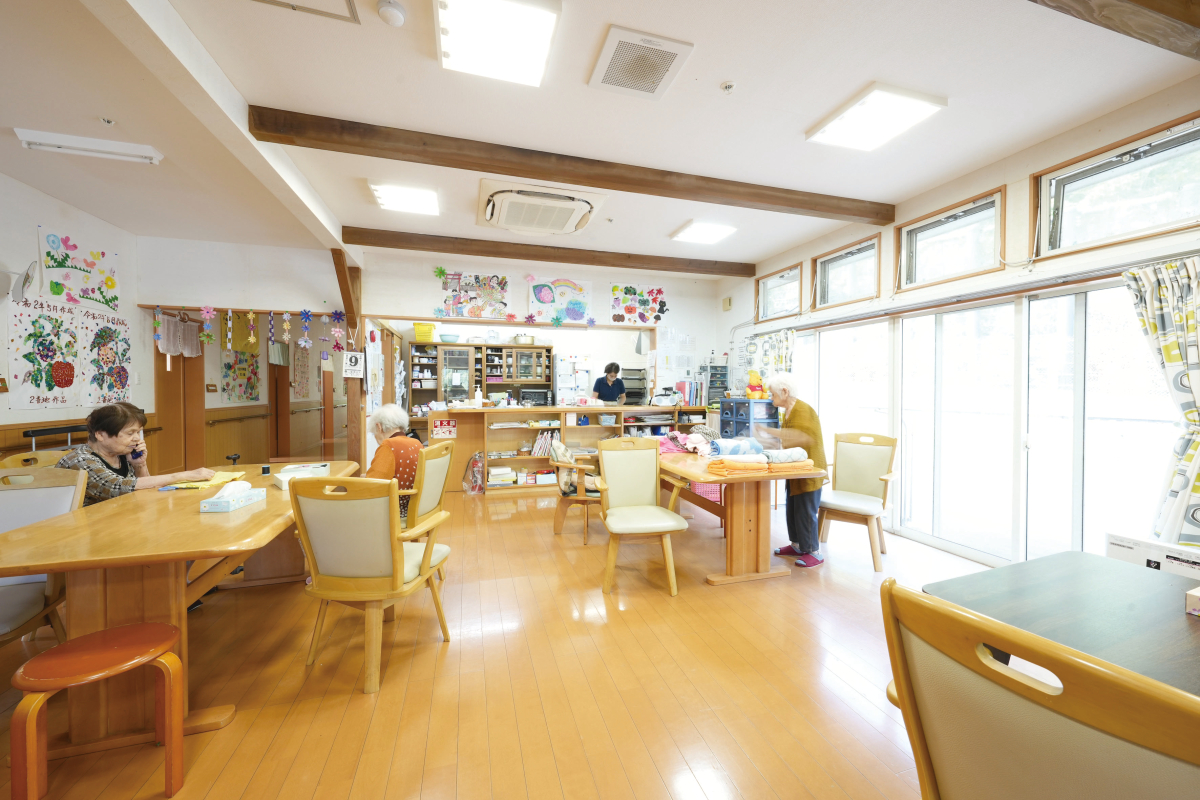 居宅において介護を受けることが、思い通りになかなかできない方の利用施設。家庭的なゆったりとした環境の中で高齢者が失いかけた能力を再び引き延ばし、潜在的な力を伸ばすよう働きかけていくことを目的としています。