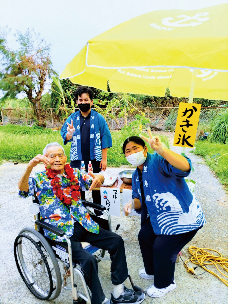 特別養護老人ホーム「笠寿園」は施設介護、通所介護の2つのサービスを通じて、介護を必要とする高齢者が、安らぎと生きがいを感じながら生活を送るためのサポートを行っております。さまざまなイベントを用意し、入所者同士はもちろん、地域の方々とのふれあいを大切にした環境を整えています。